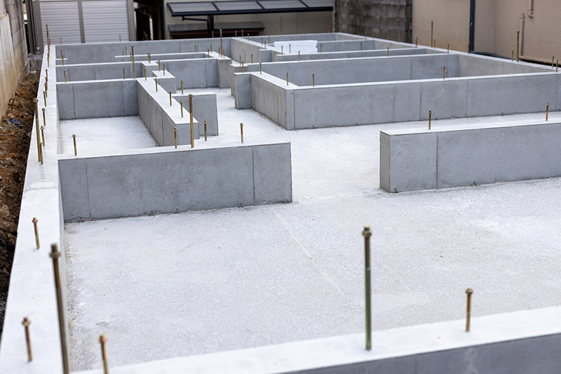 基礎工事は、建物の土台となる基礎を立ち上げる工事になります。掘削・配筋・コンクリート打設などさまざまな工程があり、途中で配筋検査が実施されます。