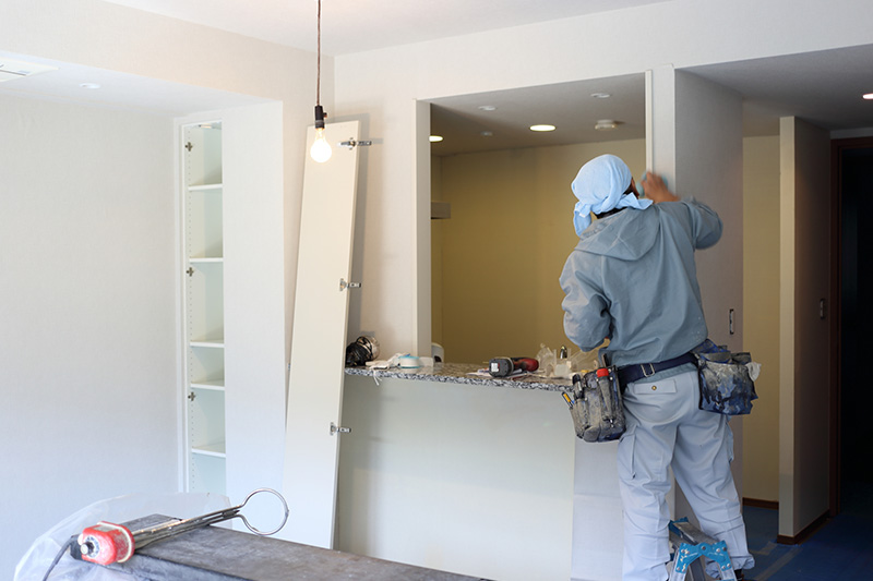 屋根・外壁工事と並行し、クロス、フローリング、階段、キッチンや浴室といった各部屋に応じた設備設置、収納部の工事など、各種内装工事を行います。